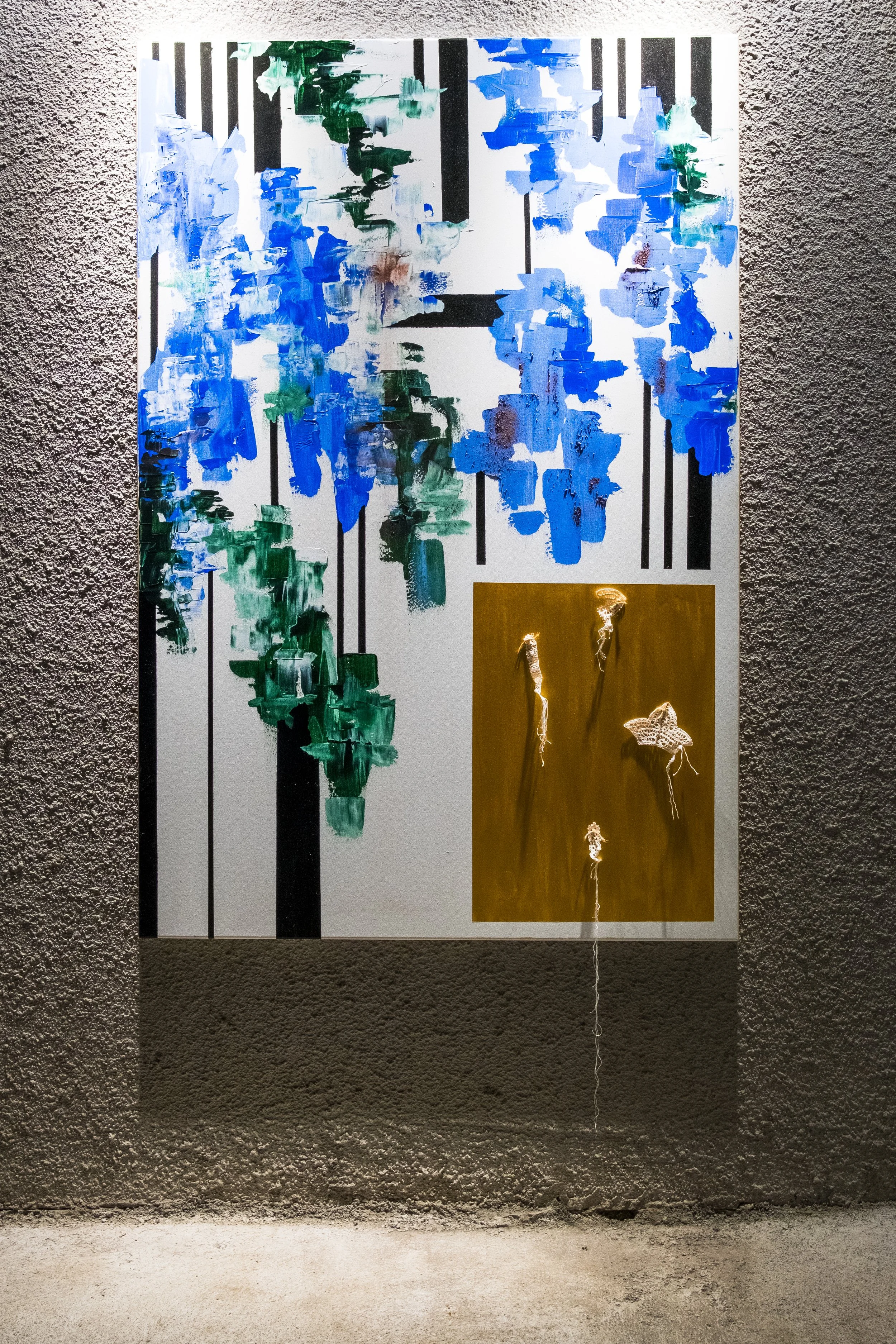 Mixed media on canvas. (mercury cinnabar, acrylic and Idrija lace)